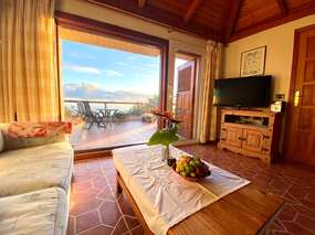 Wohnen Sie auf einer schöner 2 - 4 Personen Gartenfinca mit traumhaften Meerblick, in einem freistehenden, rustikalen "Fincahaus" umgeben von tropischen Pflanzen, Obst, Wein und Blumen.