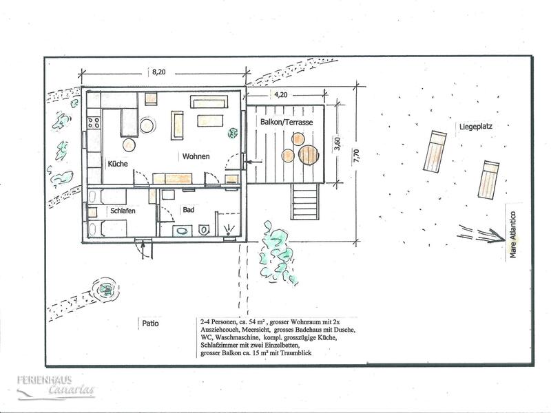 Das über 100- jährige Fincahaus wurde liebevoll restauriert und mit Geschmack und Komfort eingerichtet. Nun stellt sie sich dar mit einem Wohnbereich, einer Einbauküche, einem Schlafbereich mit 2 Einzelbetten je 90x200 die auch gerne zusammengestellt werden können, sowie ein Bad. Auch vom Wohnbereich aus haben Sie einen grandiosen Atlantikblick.