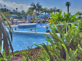 Die gesamten Einrichtungen des La Quinta Park stehen Ihnen zur Verfügung. Zur Anlage gehören zwei Swimmingpools, davon einer mit sehr großem, beheiztem Becken. Zudem stehen überall Sonnenliegen in ausreichender Menge zur Verfügung. Zur Anlage gehören außerdem eine Rezeption, Lifts, ein Restaurant, eine Bar, ein Minimarkt. Gegen eine überschaubare Gebühr können Sie den Spa-Bereich mit Hallenbad, zwei Whirlpools, Templarium mit extra Whirlpool, Sauna und Dampfbad nutzen oder diverse Sportarten wie Tennis, Squash, Fitness, Minigolf oder Billard ausüben. Das Cafe am Pool hat wieder geöffnet ... von Mittwoch bis Sonntag von 09.30 bis 21 Uhr