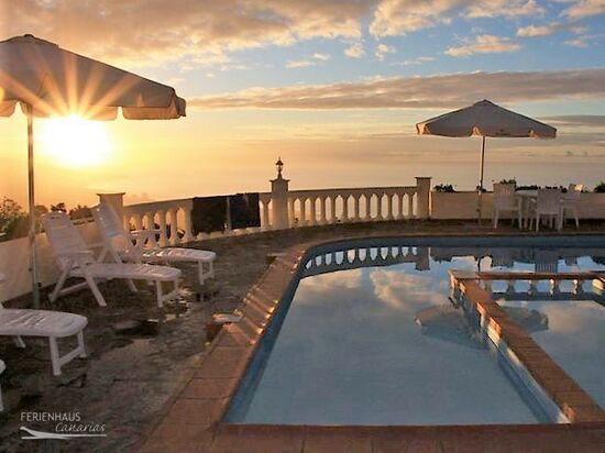 Vom schönem Poolbereich der Finca haben Sie einen wundervollen Blick auf das Meer, das Orotavatal und den Teide.