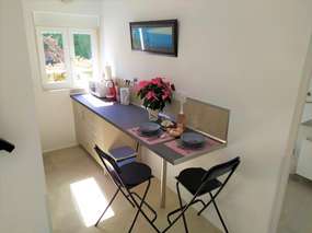 Dieses Studio 4 verfügt außerdem über eine sehr grosse Terrasse mit einer gemütlichen Sitzecke, so dass sich das wundervolle Klima der Insel auch sehr gut in privater Atmosphäre genießen lässt.