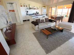 from the living room with unobstructed views of the ocean and the neighboring island of La Gomera. direct access to the furnished wooden terrace (approx. 30 m²) The holiday home is another terrace (approx. 30 m²) with sun loungers and an outdoor shower with hot water.