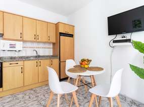 In the kitchen, you have oven, ceramic hob, fridge-freezer, toaster etc. From the big shared roof terrace with garden furniture and sun loungers you have view of the Atlantic and La Gomera.