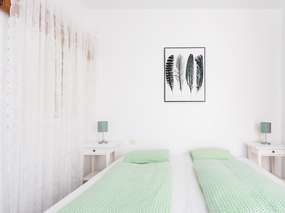 The bedroom has 2 single beds (90x190cm). The spacious bathroom contains shower, washbasin, bidet and WC. Bedlinen, towels, bath and tea towels are at your disposal, too.