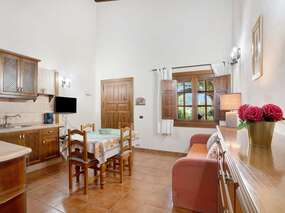 The flat „pequeño 1“ has 1 bedroom, living room with fitted kitchen, bathroom and private terrace, suitable for 2 people plus baby.