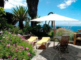 From the south-west facing, furnished sun terrace with barbecue, enjoy over the tropical garden across a beautiful view of the sea, the coast and the Teide.