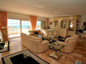 The living / dining room with sofa, dining area and other cosy sitting areas is huge (120m²). Adjacent to the living room is the 40m² south-facing terrace with stunning sea views and patio furniture.