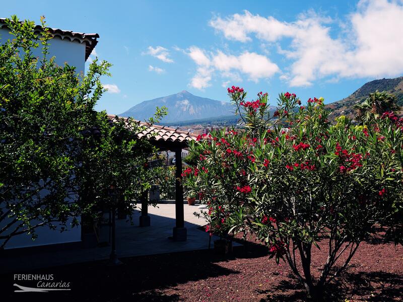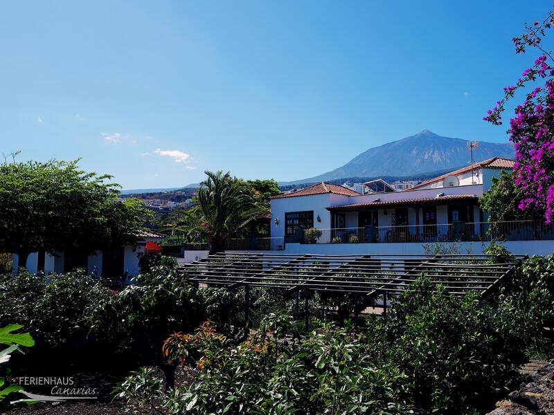 Relax in the garden with fruit trees or on of the two terraces with table, chairs and sun loungers. 1 sun terrace (45m²) with view of the Teide and 1 sun terrace (30m²) with great ocean view.
