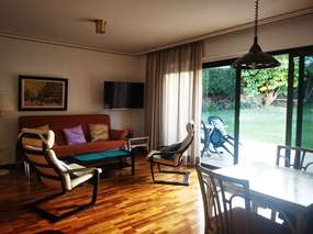 The flat faces southwest and is located on the ground floor. This allows direct access to the large well-kept garden and the approx. 8x4m pool. On 88m2 the sound- and heat-protected flat offers enough space for 2 persons.