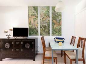 In the living room there is a comfortable sofa, a TV and of course fast internet via WLAN. In the kitchen you will find everything you need for self-catering, including a cooker with four hobs, an oven, a fridge-freezer, microwave, toaster, coffee maker, kettle, crockery and much more...