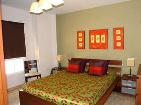 Master bedroom with big double bed (180x200 cm) and wardrobe. Second bedroom with b2 beds. The bathroom has a tub.