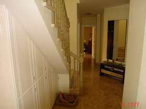 First floor: livingroom, master bedroom, children´s bedroom, bathroom and balcony. Living room with sofa, dining table and satelite TV, open kitchen and the balcony next to it.