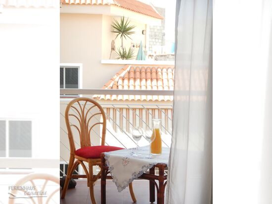 There are 2 outdoor areas belonging to the holiday flat. One of the two balconies with a table and some chairs is next to the livingroom and has a harbour view and the second one is accessible from the kitchen.