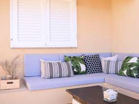 This fantastic holiday flat with seaview and modern ambience has two large terraces with chill-out areas. There are also douches for hotter days and a dining table so that you can already enjoy your breakfast outside.