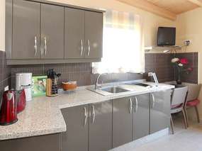 The holiday house is furnished with a modern living room with comfortable upholstered furniture, Sat TV with international channels and a fitted kitchen (integrated in the living room) with dish washer, 4 hotplates ceran stove, microwave, fridge, sink, toaster, coffee machine, fruit press, and kettle.