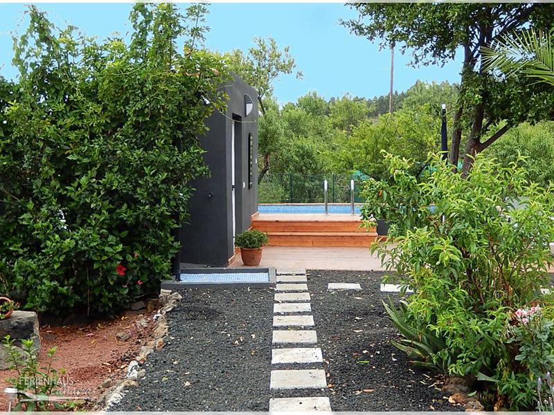 The holiday house with a privat pool is located in Las Patitas above Icod de los Vinos at a hight at about 450m. The property of the typical Canarian finca is located in a sheltered, quiet area, which offers a fantastic view on the sea and the mountains. The Teide is within reach.