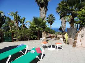 The view from the large furnished terrace goes over the garden across the Atlantic Ocean and Mount Teide. For cozy evenings on the terrace is there further a bbq.