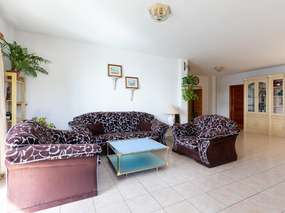 In the living room you will find a dining area as well as a comfortable sofa. The kitchen is equipped with all the necessary utensils and appliances: stove, cooker, microwave, big fridge with freezer, coffee machine, toaster, etc. Furthermore, there is an iron, satellite TV, a DVD-Player and internet access.