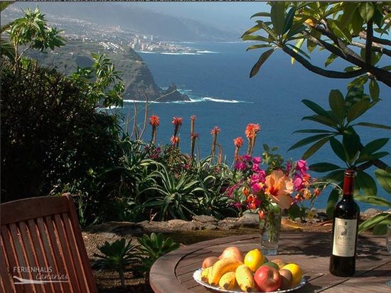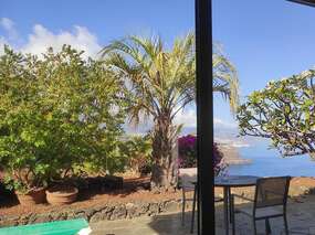 From the south-west facing, furnished sun terrace with barbecue, enjoy over the tropical gardens across a beautiful view of the sea, the coast and the Teide.