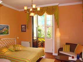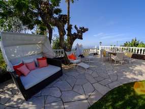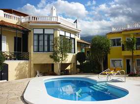 The studios are located in a mansion with 13 flats and studios, garden and pool in Puerto de la Cruz above the Playa Jardín. You will find this mansion in a very calm area with a nice BBQ-place and a 160m² big and sunny terrace. As the house is placed on a lightly hillside and it is surrounded by banana plantations, you can enjoy a wonderful sea view, a view over the Teide and the Orotavatal. Although it is a quiet area, shopping facilities, the city and the beach are reachable in 15 minutes by foot (1km). You will find beautiful waterscapes beaches, golf, hiking- and mountainbiking-facilities nearby. This domicile is a great one to enjoy relaxation at the pool area, in the garden, on the sun terrace or in your lounge furnishment. You, as a guest, can use the outdoor kitchen and a Bodega with drink consignments. the following accomplishments are included in the price: weekly cleaning and change of bedding, pool-/ beach towels, BBQ, avocados, bananas, cactus pears, papayas, mangos, oranges etc. from own plantations. The studios are equipped with SAT-TV and international TV-programmes, telephones, gas central heating etc. The pool with joint usage is heated. For a fee, you can also have breakfast buffet or bun consignments, a hair dryer, raclettes, fondues, DVD-players, laundry service, babysitters etc. Your valuables can be safed in the main safe in the office. For a fee of 50€, you can use unlimited internet via WiFi.