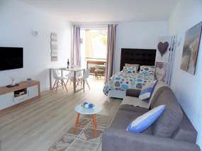 With a living area of around 54 m², the studio is ideal for 2 people. The furnishing is modern, there is a living / bedroom with a comfortable double bed, a small dining area and an open modern kitchenette. The sofa can be converted into a bed in no time at all. If you wish, you can separate the sleeping and living area with a screen. The kitchen is new and fully equipped. The shower room has also recently been renovated.