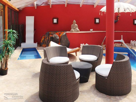 The big Bedouin tent is another highlight. It is also perfect for seminars, birthday parties or other parties. The application area with sauna, waterbed, massage beds and massage tub is available with a booked treatment.