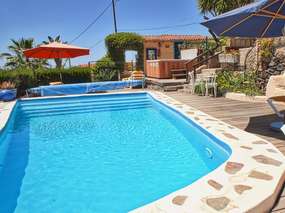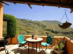 It is a sunny, small holiday house in country house style. In front of the entrance into the country house, there is a south-west terrace (about 12sqm) with pergola and garden furniture. From this full-time sunny terrace, you can enjoy the fantastic view of the Barranco and the Atlantic to La Gomera.