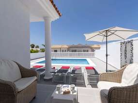 The elegant villa with heating privatepool in Callao Salvaje - on the sunny south-west coast of Tenerife - is comfortable and suitable for those who are looking for silence and relaxation. The unspoilt sandy bay, where you can go swimming, and the city centre with restaurants and many other shops can be reached by foot in only 10 minutes.
