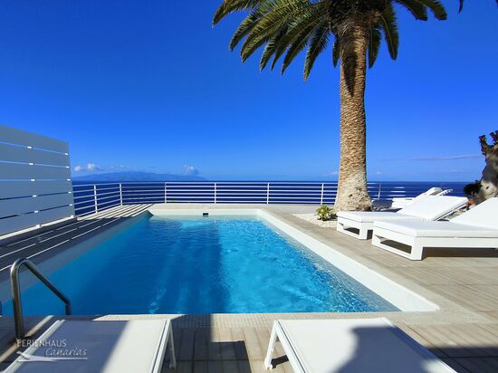 Luminoso y moderno chalet con piscina privada en una ubicación privilegiada en Los Gigantes, que ofrece magníficas vistas del Océano Atlántico, la isla de La Gomera y los acantilados de Los Gigantes y desde donde podrá disfrutar de unas puestas de sol inolvidables.