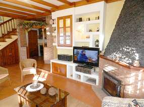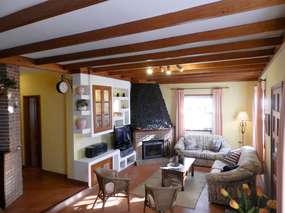 Een van de slaapkamers en een wasruimte bevinden zich op de bovenste etage onder het dak. De twee andere slaapkamers, een voor 2 personen en een voor 1 persoon, zijn op de begane grond. Voor een 6e persoon kan een extra bed worden geplaatst. Ook de keuken, de woonkamer en tweede badkamer zijn op de begane grond. In de woonkamer bevindt zich een haardkachel (brandhout en kolen zijn aan veel tankstations en in sommige winkels verkrijgbaar). In de tweede badkamer bevinden zich een bidet, douche, ligbad, droogrek, wc en föhn. Traditionele keuken met koelkast, vriezer, magnetron, oven, wasmachine, koffiezetapparaat, broodrooster enz...