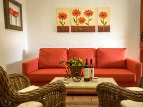 Het huis onder de indruk van zachte zonnige kleuren in alle kamers en een slaapkamer plus slaapbank in de woonkamer voor max. 4 personen ontworpen.