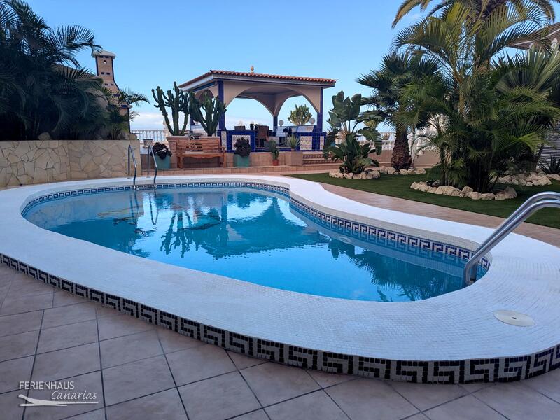 Mein Mann und ich waren schon des öfteren auf Teneriffa , jedoch zum ersten Mal in Puerto Santiago . Nach unserer Ankunft in einer ganz normalen Straße von P.S. , vor einem fast normalen Haus , waren wir zunächst erschrocken und enttäuscht . Doch dann öffnete sich die Türe und wir erblickten ein wunderschönes Anwesen mit herrlichen tropischen Pflanzen , einer riesigen Sonnenterrasse , einem Schwimmbad das den Namen wirklich verdient , maurisch anmutende Mosaiken und den herrlichen Blick auf das Meer.Es war wie ein Wunder ! Marlies , die Besitzerin empfing uns überaus freundlich . Ihre Gastfreundschaft sollten wir in den folgenden Wochen noch besonders intensiv kennen-und schätzen lernen . Der gute Geist des Hauses und der Anlage aber ist Gabi , die versuchte jederzeit alle Wünsche zu erfüllen . Wir sagen Marlies und Gabi unseren herzlichen Dank dafür . Eine Tatsache will ich nicht verschweigen : Direkt neben diesem Anwesen wird zur Zeit ein Haus gebaut , der Baulärm hat uns ab und zu genervt , war aber nicht jeden Tag gleich stark und auch , wenn man die Fenster schloss , zu ertragen .