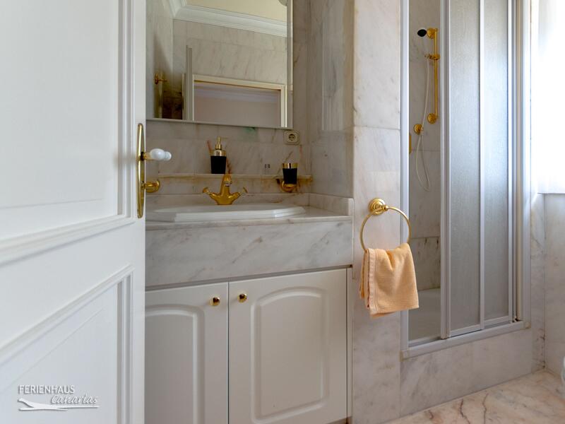 Im zweiten Schlafzimmer gibt es ebenfalls ein eigenes Bad mit Dusche, Waschbecken, WC, Bademäntel und mit 14 Karat vergoldete Armaturen. Ein separates Gäste-WC ist ebenfalls vorhanden.