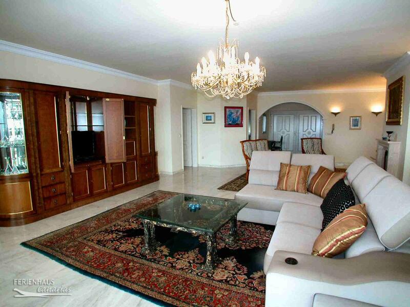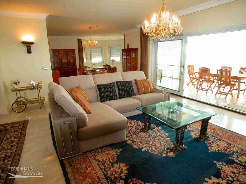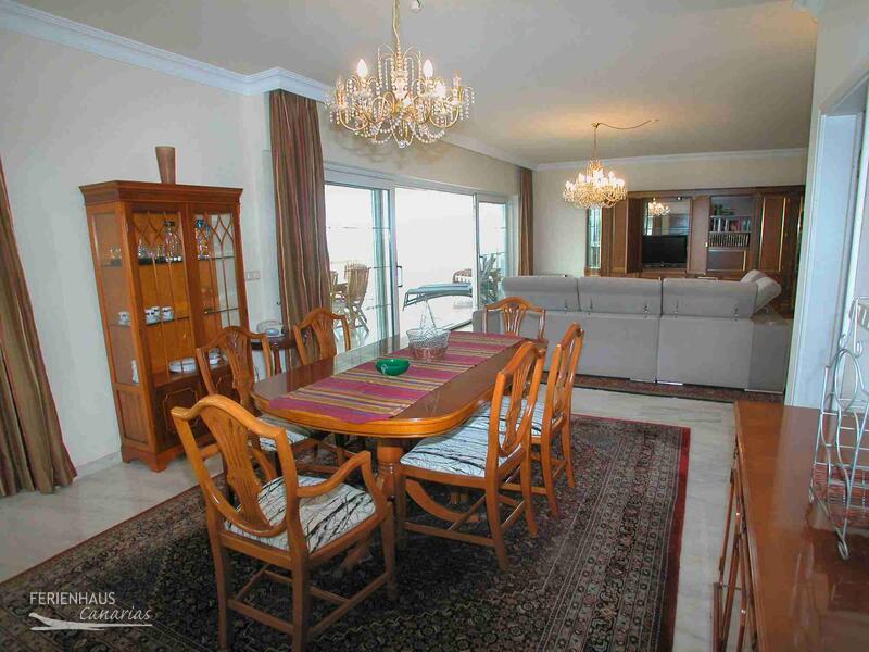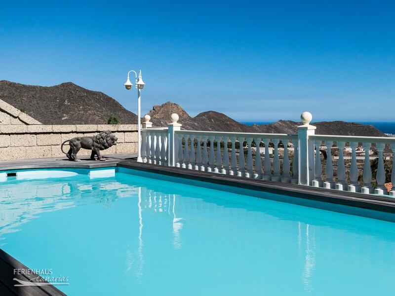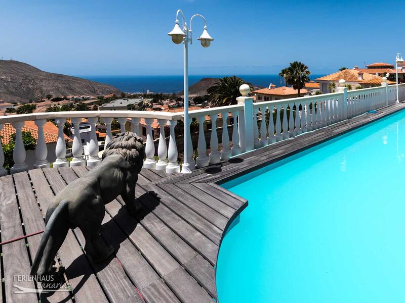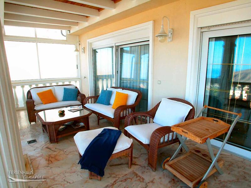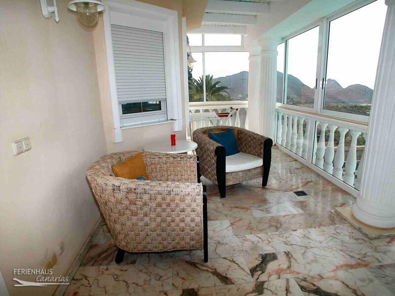 Auf der großen, südlich ausgerichteten Terrasse mit Essplatz für 6 Personen, Relaxmöbeln, Sonnenliegen und Grill hat man Blick auf den Pool und einen fantastischen Blick auf den Ort Los Cristianos, den Atlantik und die Berge. Der Gemeinschaftspool befindet sich im Erdgeschoß.