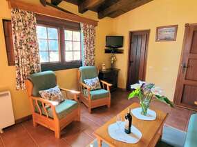 Das ca. 70 m2 große Haus ist mit einem gemütlichen Wohn- und Essbereich ausgestattet, der eine integrierte und voll ausgestattete Küche umfasst. Es gibt ein Hauptschlafzimmer mit einem 1,35 m breiten Doppelbett, ein separates Schlafzimmer mit 2 Einzelbetten und ein Duschbad. Eine Heizung ist vorhanden und für frische Abende steht auch ein Kamin zur Verfügung, allerdings ist das Holz hierfür nicht im Preis inbegriffen.