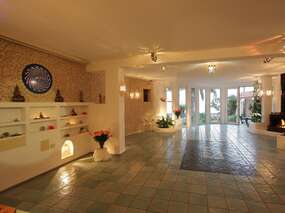 Der 70 m² große Seminarraum mit Blick auf prächtigen Garten und den Atlantik kann vielfältig benutzt werden. Hier kann man von Yoga-Retreats über Teambuilding, Tanz und stille Meditationen, Workshops und Konferenzen alles machen.